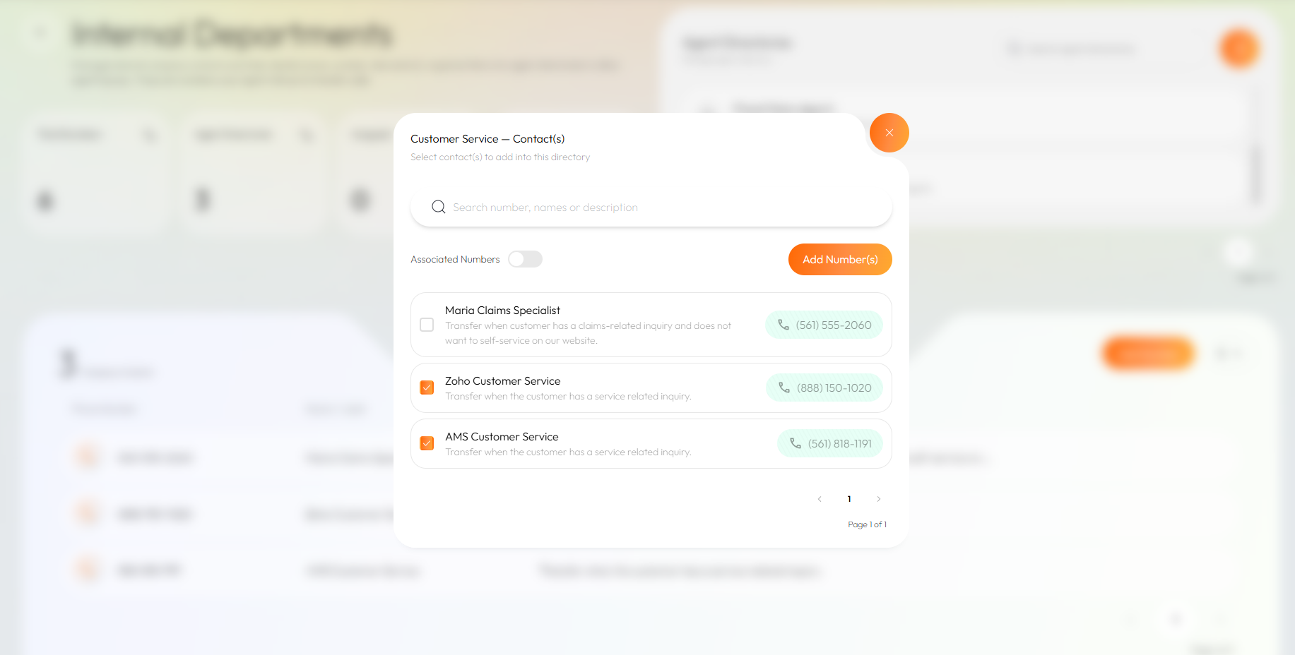 Add company phone contacts (transfer options) and assign them to an agent directory to make them available to your agents.