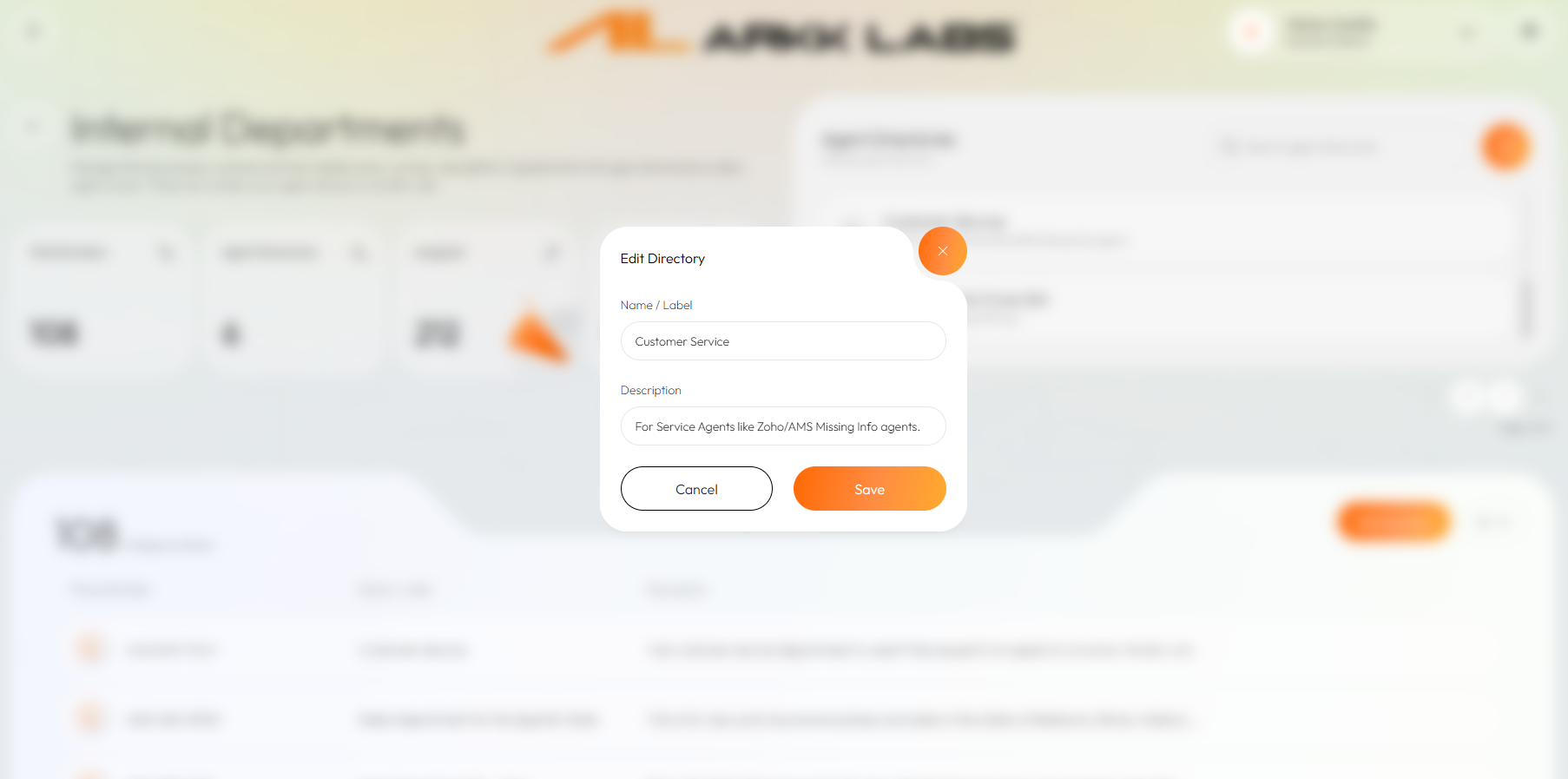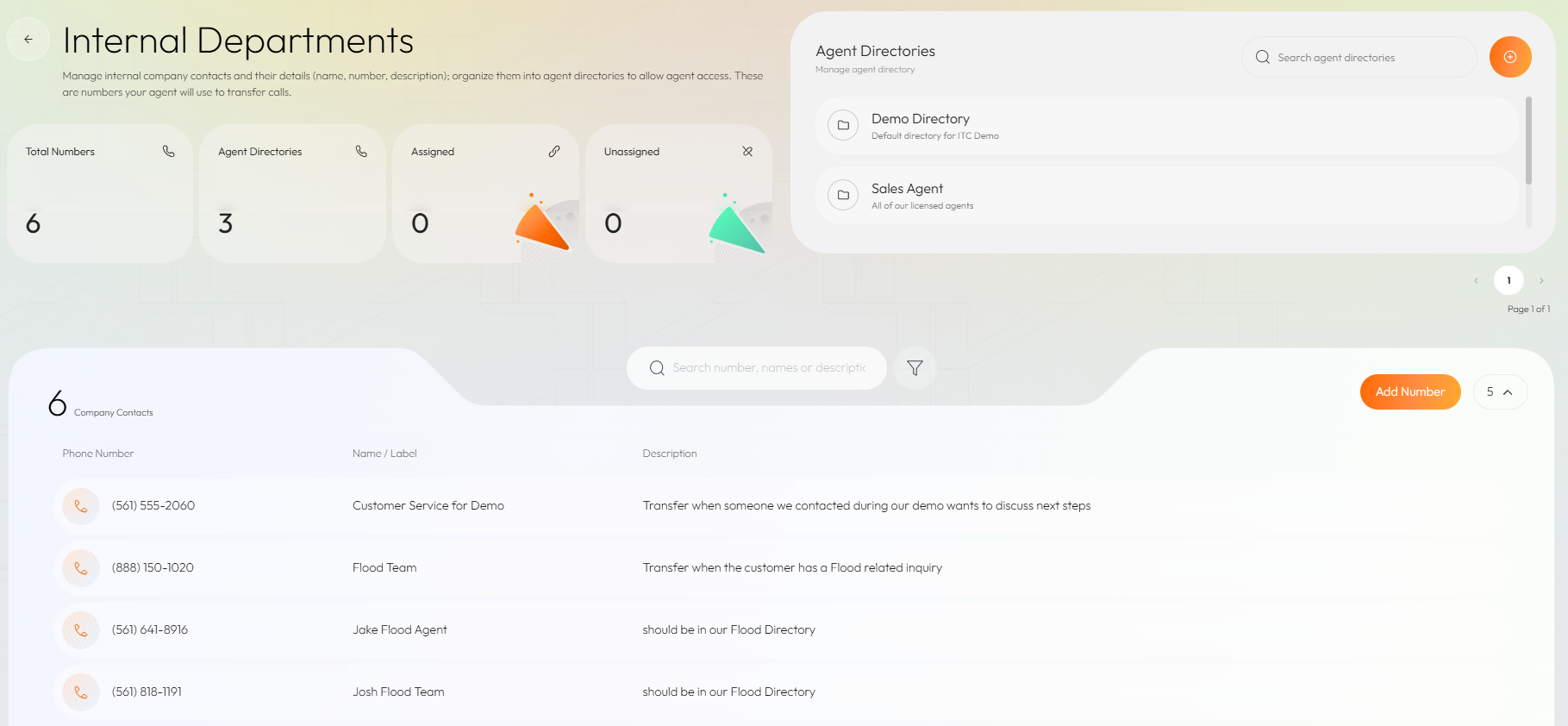 An Agent Directory is a folder that groups one or more phone numbers for your ARKK Phone Agent to access during a call. These folders typically correspond to a specific area or department, avoiding the need to expose the agent to dozens or hundreds of company contacts.