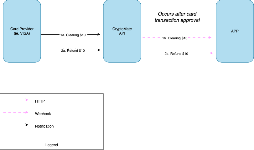 { "product": "CARDS", "event_type": "REFUND", "operation_id": "ca0c57d2-b1c9-4bcd-9d5d-8d361cad6fddds1c", "status": "SUCCESS", "data": { "card_id": "ivZPARvNBLOSZx69q4DCBBGUfVhCMsLw", "amount": 100.2, "currency_number": 840, "currency_code": "USD", "exchange_rate": null, "channel": "ECOMMERCE", "created_at": "2024-05-15T21:38:57.677Z", "fees": { "atm_fees": 0, "fx_fees": 0 }, "merchant_data": { "id": "311178830000", "name": "Amazon Es", "city": "Barcelona", "post_code": "16633", "state": "Cataluña", "country": "ESP", "mcc_category": "Electronics Stores", "mcc_code": "5732" } }}Response: