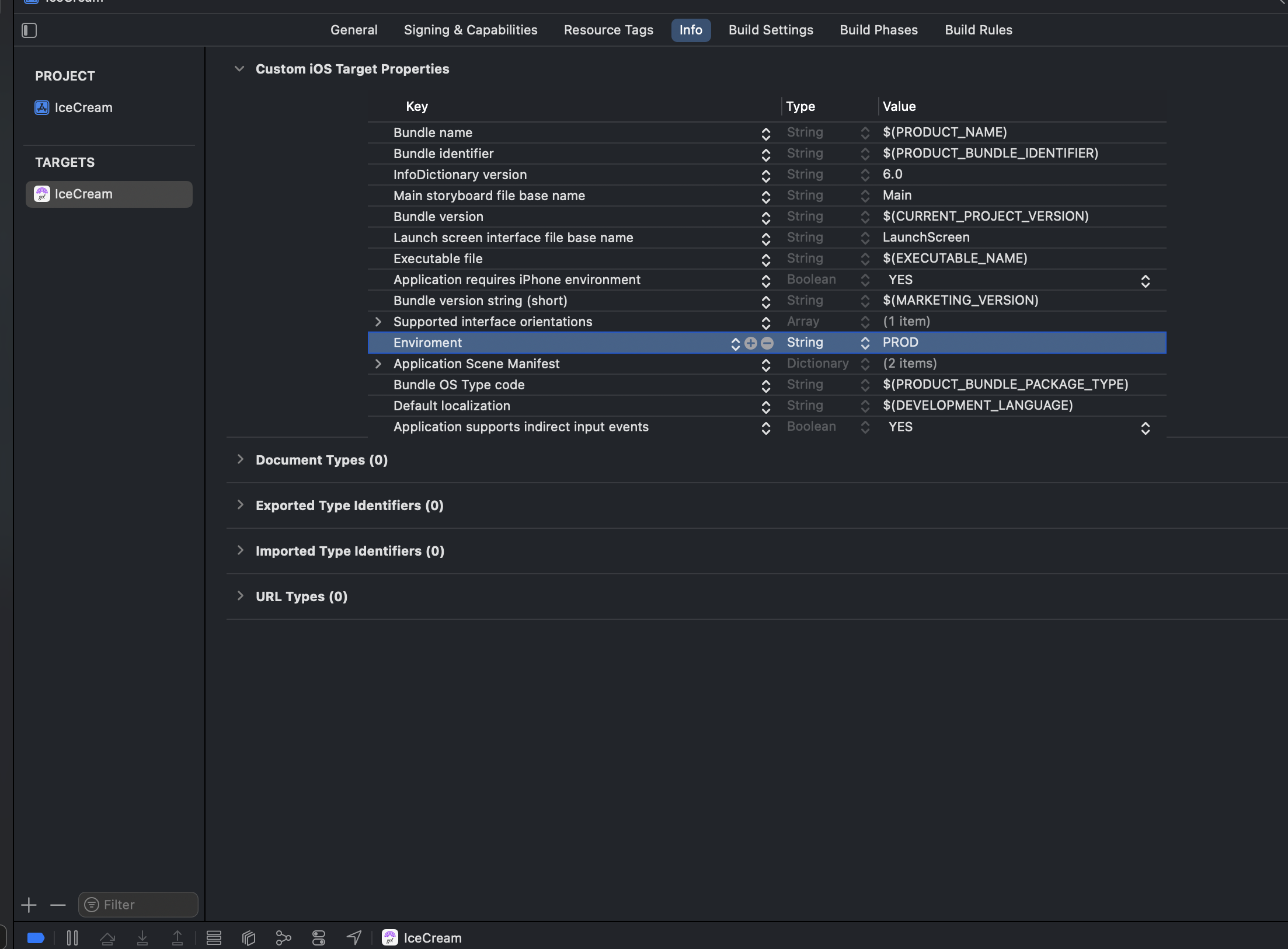 Add this Environment keys and values in the Info.plist file for UAT and PROD