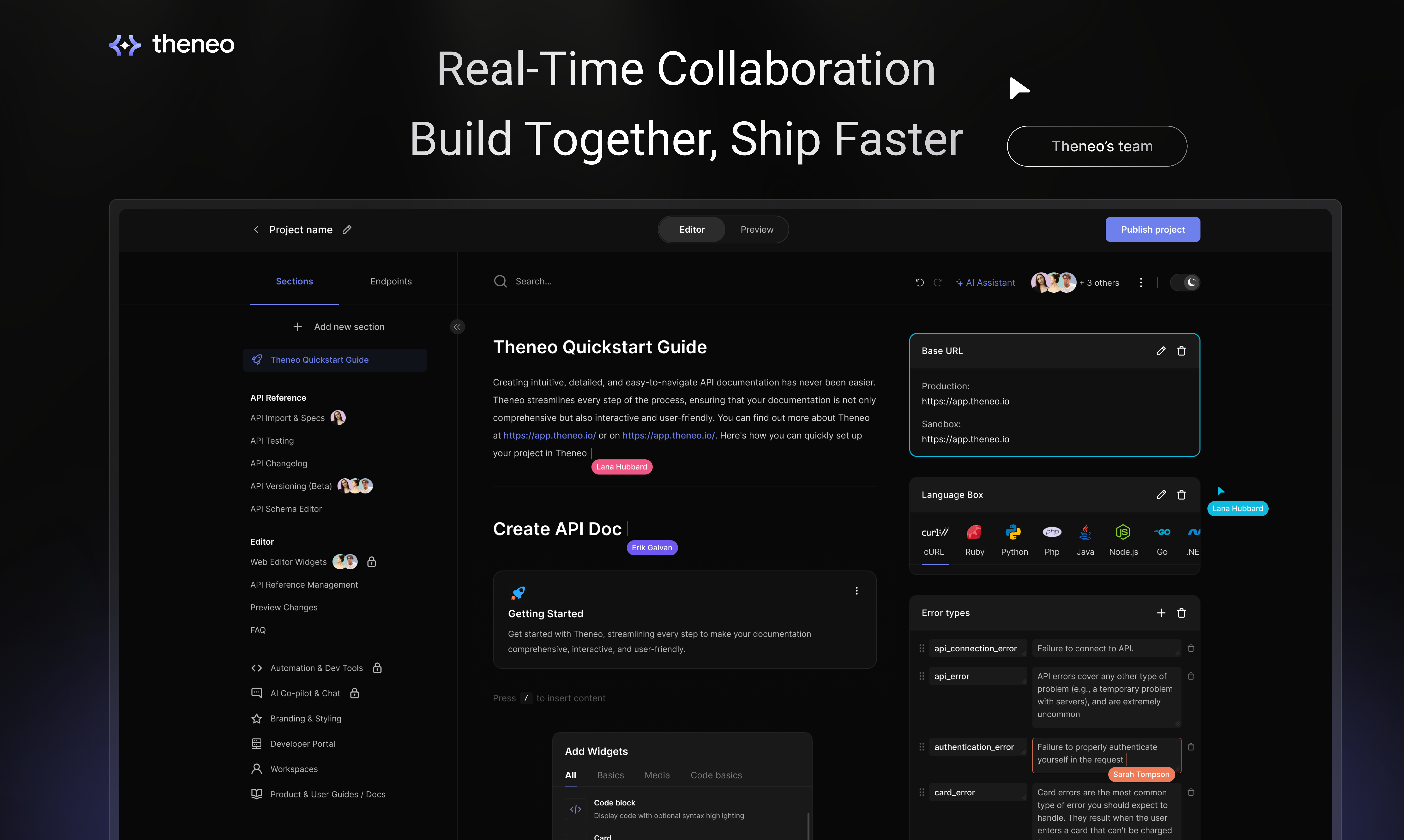 Introducing live collaboration in our brand-new editor! We’re blending the best of Figma and Notion to bring you a seamless collaborative experience. Now, you and your team can make API updates and write user guides in real-time, seeing changes happen instantly as you work together.